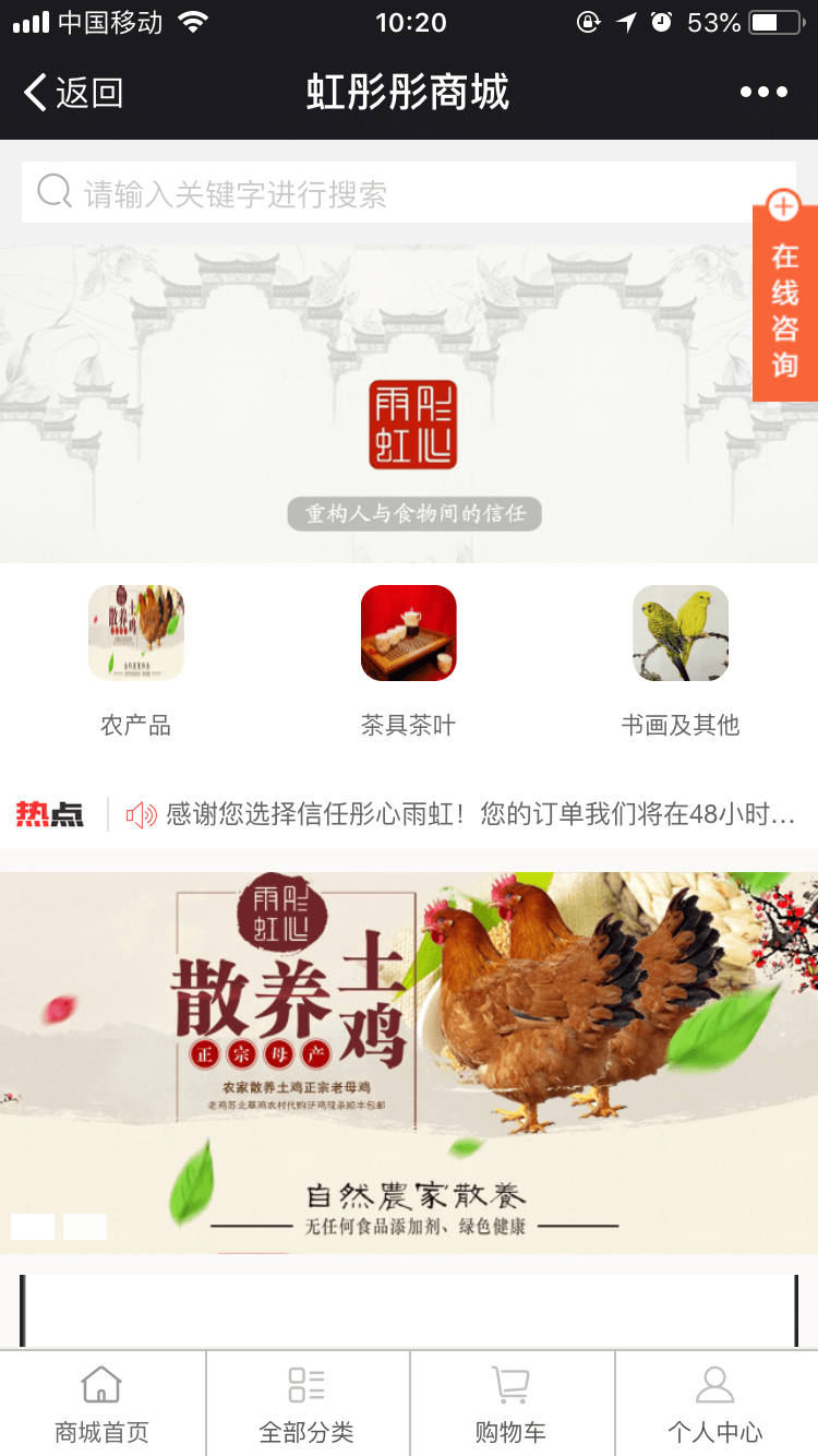 食谷之源,承书之意,品茶之韵,赏画之骨。虹彤彤商城是彤心雨虹倾力打造的“食文化 茶文化 笔墨丹青”等相关产品的微商城购物平台。